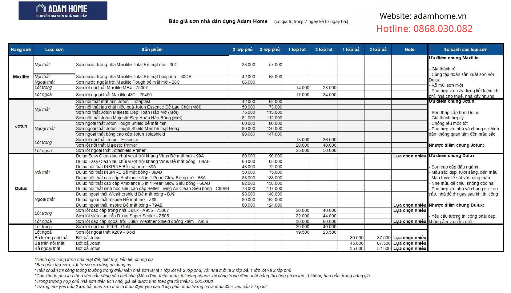 - AdamHone là các công ty sơn nhà tốt tại Hà Nội.